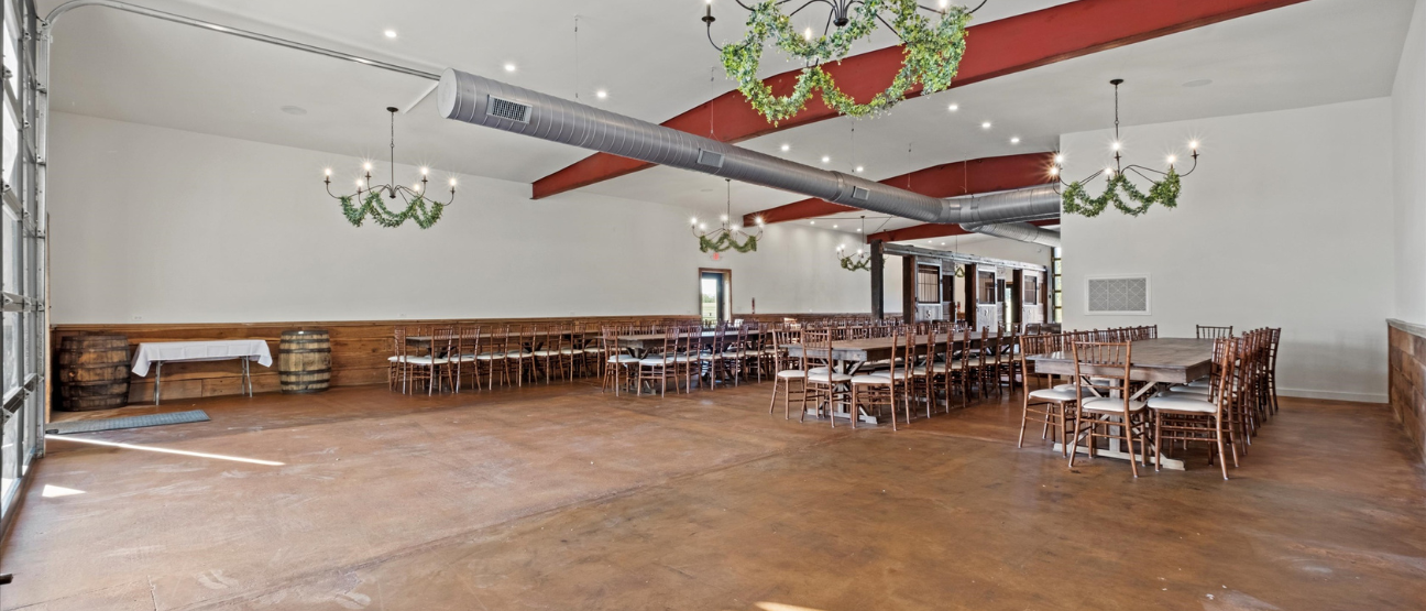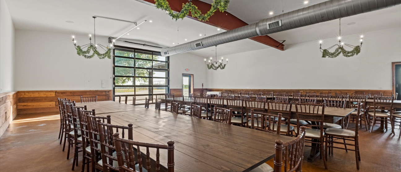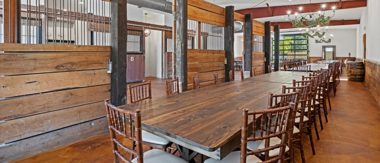 With space for up to 175 guests, both indoor and outdoor ceremony spots, and thoughtful touches like whiskey barrel tables and a Sonos sound system, The Stables brings comfort, flexibility, and country charm together in one unforgettable setting. Plus, with an on-site suite for two, you don’t have to rush the celebration.